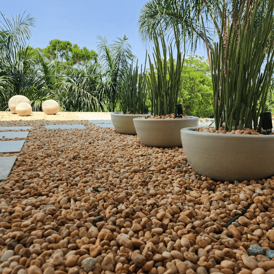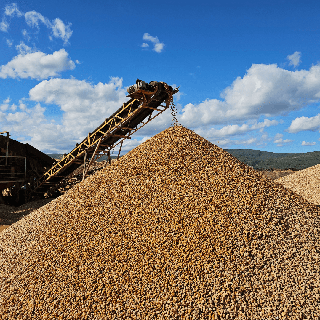 Agregado para pavimentos permeáveis. Garante o escoamento rápido da água diretamente para o solo.